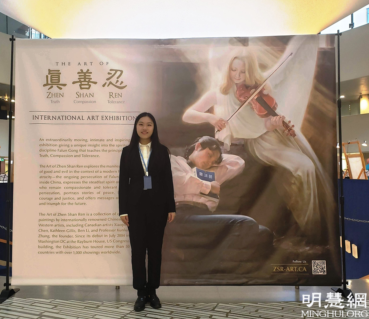 ![]() 图4:二零一九年八月二十八日,雨佳参加多伦多市政厅(City Hall)真善忍美展。 |