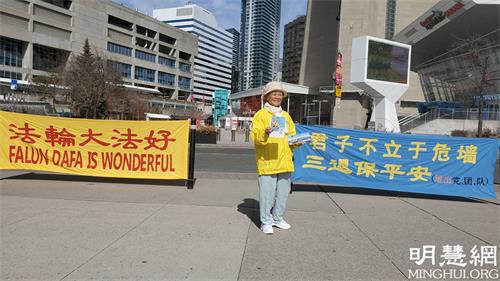 黄女士今年八十六岁了,在别人看来这是一个应该享受天伦之乐的年纪,但是她却表示自己天天出去讲真相会让自己觉得很充实,而且一点也没有疲惫的感觉。“我早上五点左右起床,开始和其他同修一起在网上学法,然后去皇后公园(Queen‘s Park)参加集体炼功,之后就去电视塔景点讲真相,这样一天下来我一点也不觉得累。其实我从来也没想过自己会老,反而觉得自己修炼后越活越年轻,现在一身没病,而且走起路来也很轻快,去哪都不会觉得累,就象个年轻人一样。”