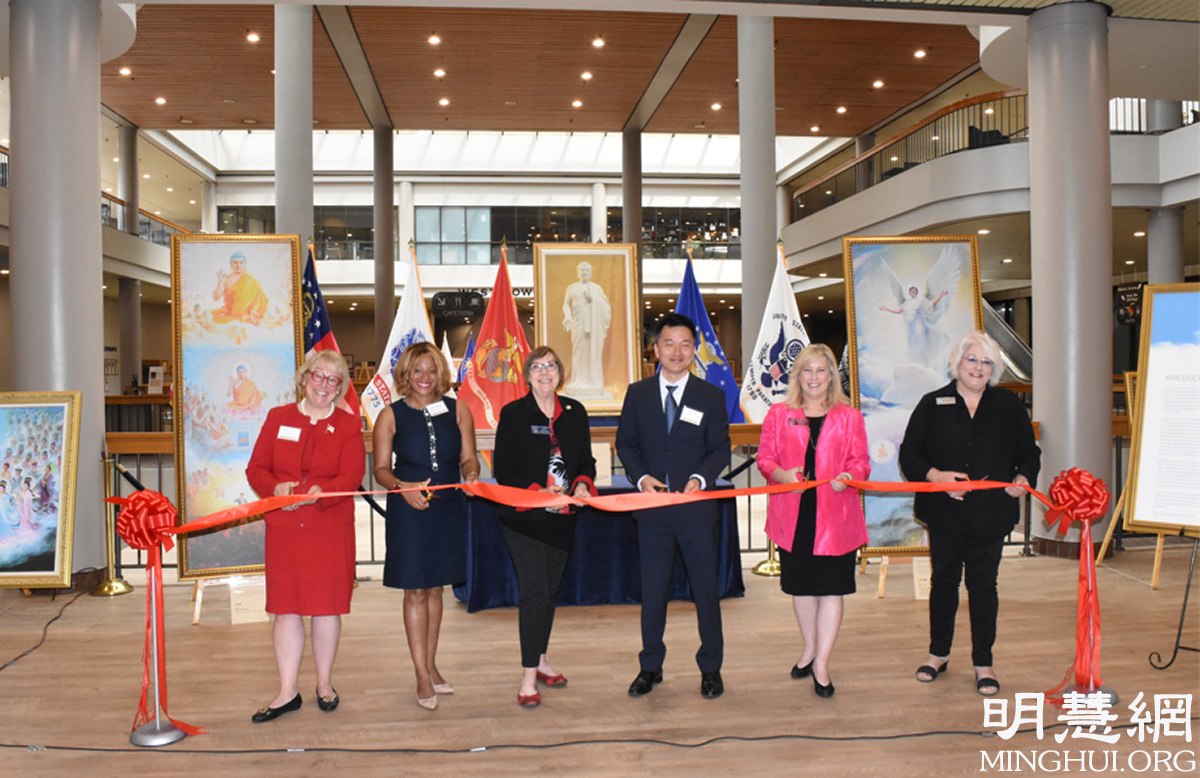 ![]() 图1:真善忍国际美展开幕典礼的剪彩仪式,左起,鹰隼论坛乔州分部总裁苏西·沃尔斯(Suzy Voyles),州众议员蜜莎·梅诺尔(Mesha Mainor),州参议员凯·寇克派翠克(Kay Kirkpatrick),主办美展的亚特兰大法轮大法学会负责人史蒂夫·孙,州众议员谢伊·罗伯茨(Shea Roberts),科布郡共和党主席莎莉·格拉布斯(Salleigh Grubbs)。 |