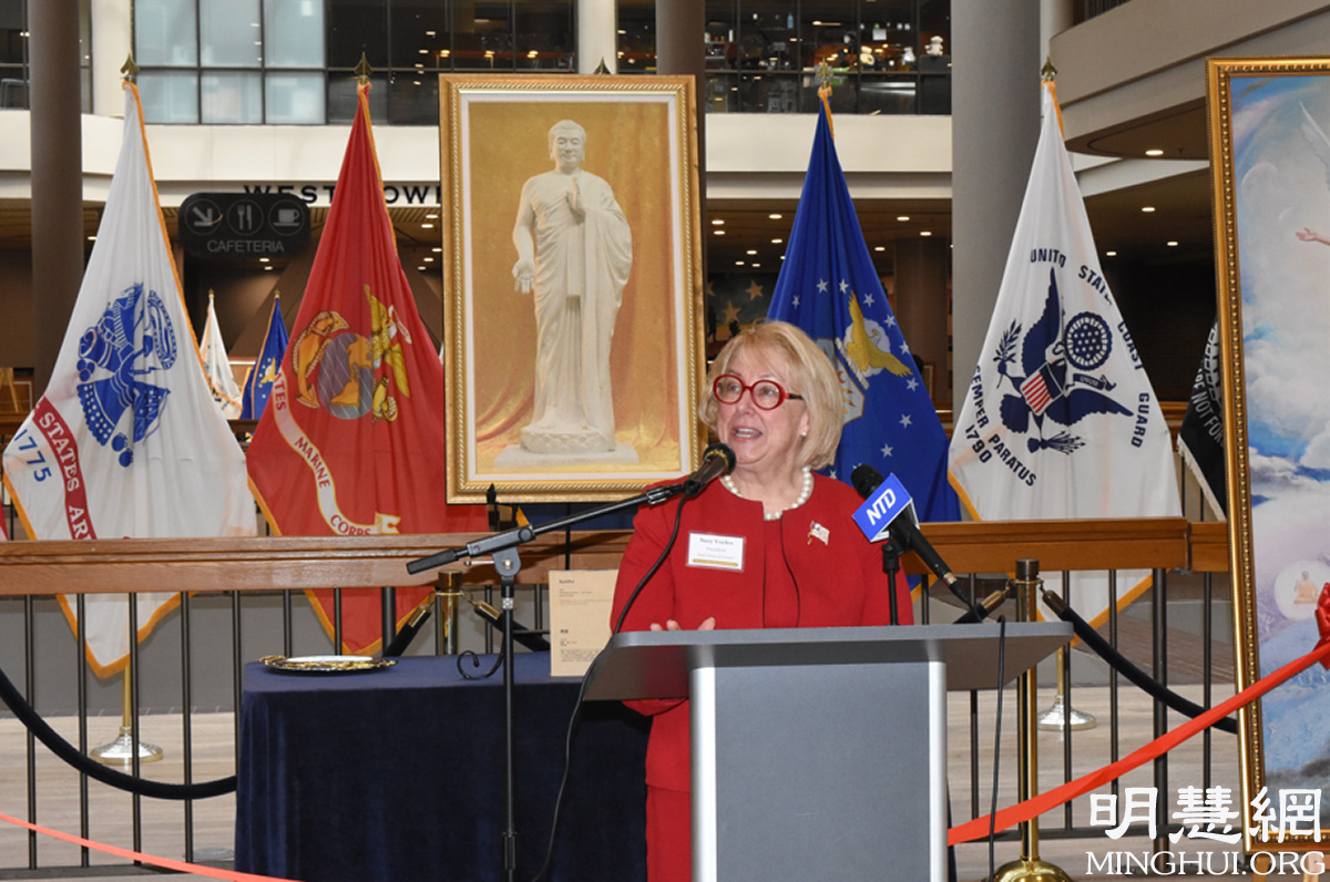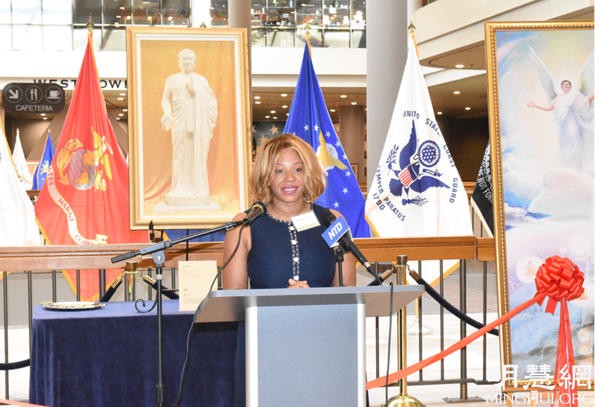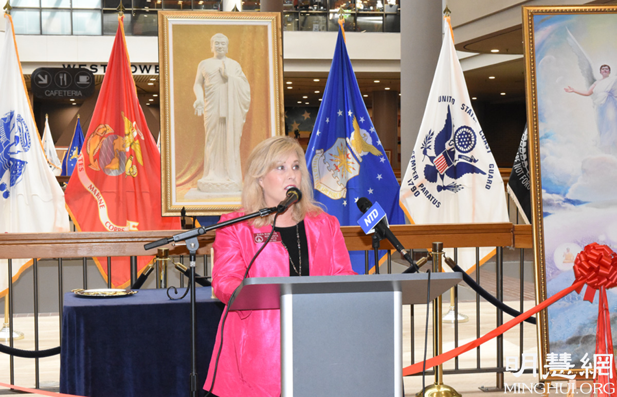 州众议员蜜莎·梅诺尔女士说她自己也尝试过打坐冥想,而且身为基督徒,她了解如同在真、善、忍的指导原则之下,我们必须以自省的态度面对这世界。她并说明她想要出席这开幕仪式的契机之一,与她的第一次出国旅行有关。香港反送中抗议时她到了那里,亲眼目睹了人们为了自由的抗争。在民主与自由下,人民才能有自己的选择,而这美展呈现了这一点。
