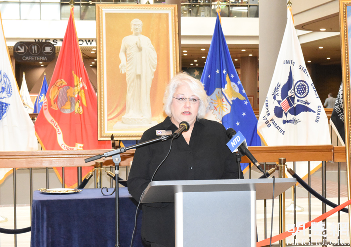 “真、善、忍,谁能反对这些?谁能说这些美德不好?我实在做不到。”鹰隼论坛乔州分部总裁苏西·沃尔斯女士开门见山地表示她对法轮大法核心价值的看法。对于中共政府迫害法轮功并更甚而做出活摘器官罪行,她这么说:“每年有成千上万的需要器官移植的病人到中国,仅仅花两个星期时间就能找到匹配的器官。这些人都在不知情的情况下也成了受害者,参与了活摘器官的谋杀。”她说在中国,所有的异议分子包括维吾尔人或是地下教会基督徒,都可能被圈在监狱成为活摘器官的对象,但是绝大部分的受害者都是法轮功学员。每年在中国估计有六万到十万起器官移植手术,这表示有这么多的人被处死仅为获取他们的器官用以牟利。沃尔斯女士说德州与内布拉斯加州都已通过决议案谴责活摘器官暴行,她很高兴乔州的议员也会推动类似的议案,但是这必须上升到联邦议院。面对这种反人类的暴行,沃尔斯女士说,如果我们还保持沉默,那么我们如何面对自己?“你照着镜子,扪心自问,我是什么样的人?”她表示,她绝对不会沉默,也鼓励大家加入,发声谴责。