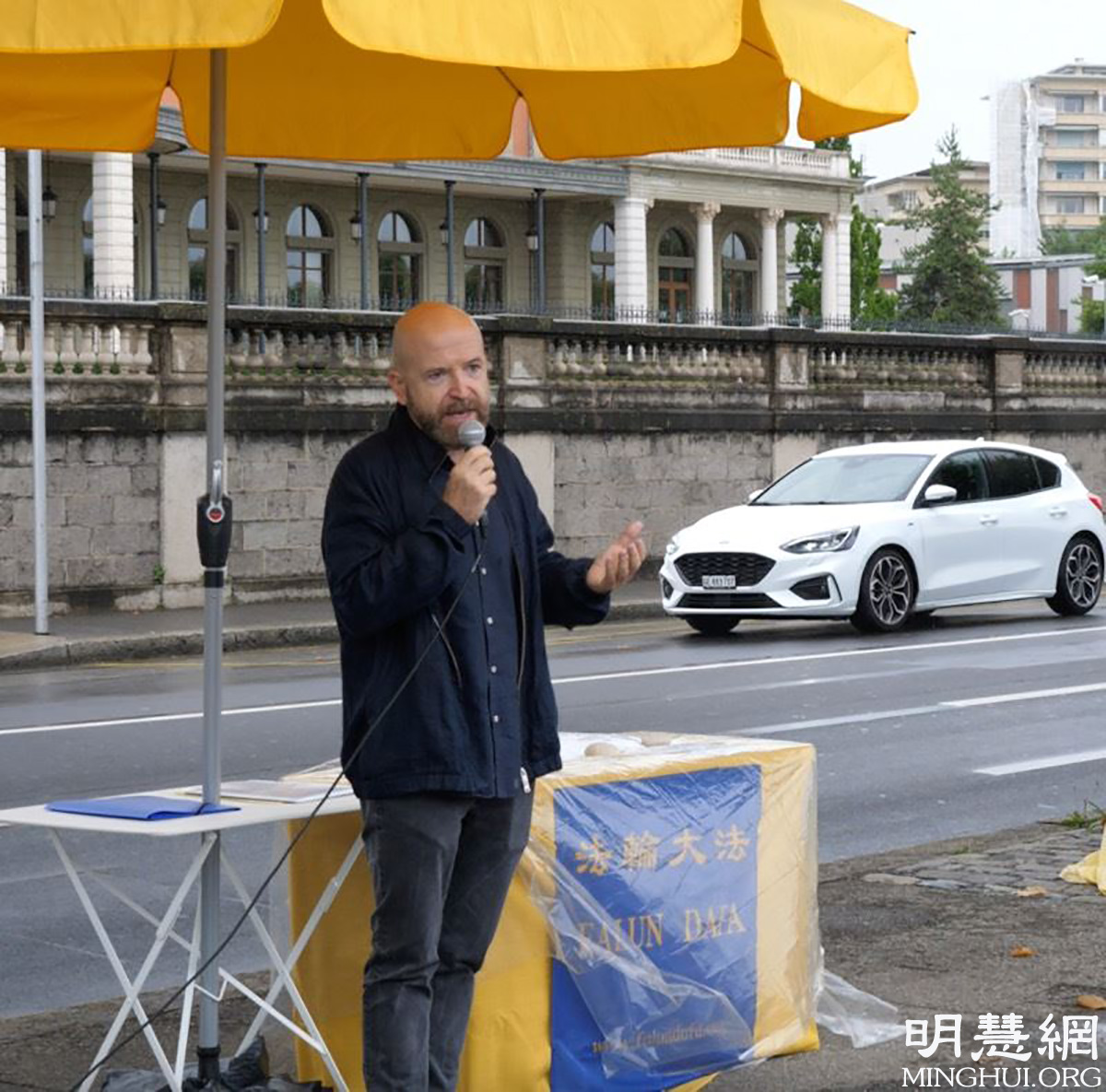 日内瓦市议员卢克·巴赫塔萨(Luc Barthassat)表示:“法轮功已经在这里抗争了二十多年,都是为了使人权和基本权利得到尊重。”他说,“谎言统治着一切,今天, 人的生命无论是在中国还是在其它地方,我认为都处于更危险之中。今天,通过法轮功,整个世界都应当认识并觉醒。让我们坚持我们的权利,坚持尊重人权。再次重申,我们必须不惜一切代价捍卫基本权利,不是等到明天,而是从今天开始。”
