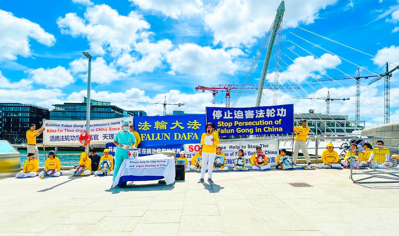 ![]() 图1:二零二一年七月十四日,爱尔兰法轮功学员在都柏林国际会议中心外举行集会,揭露中共活摘器官罪行和对法轮功长达22年的迫害。 |