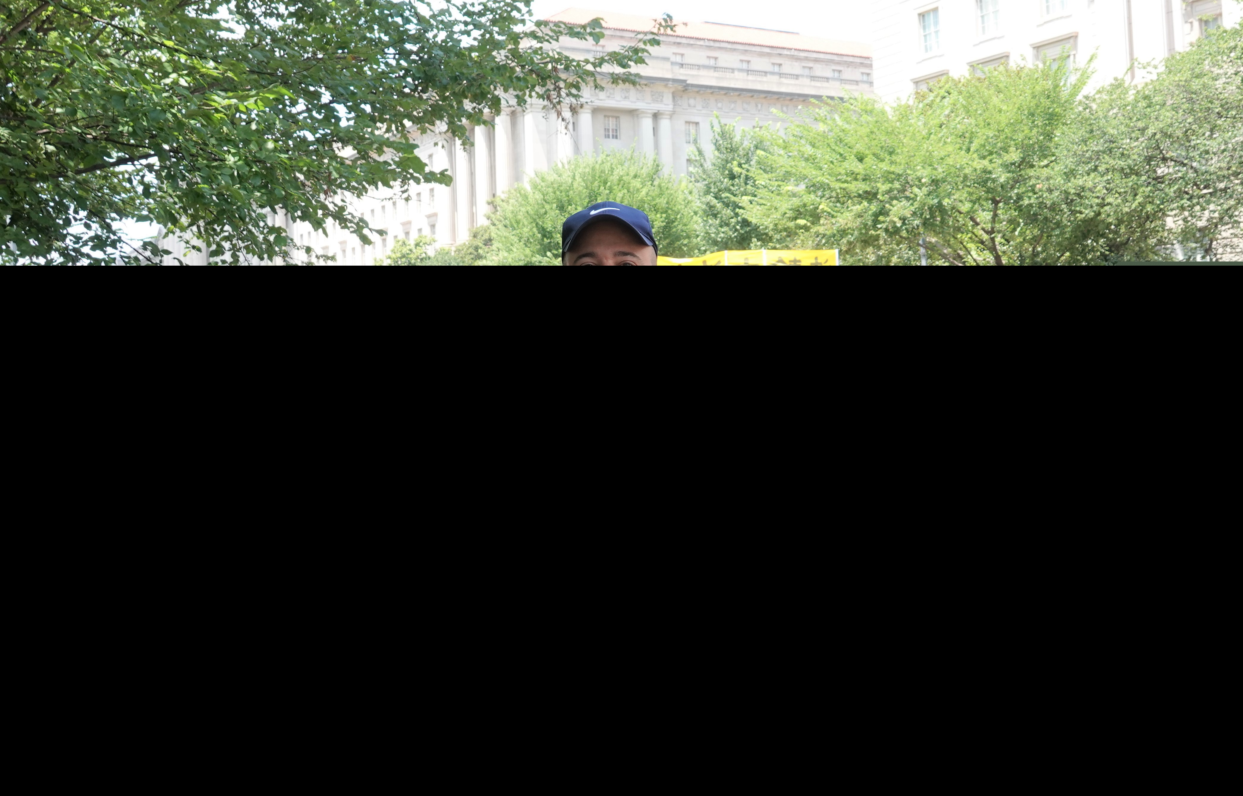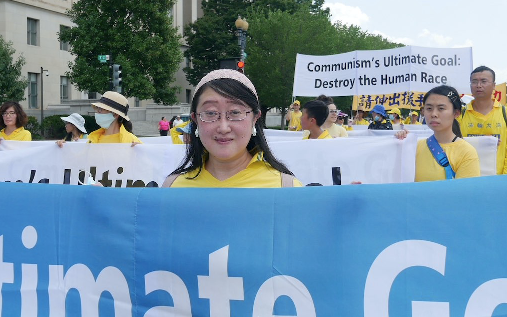 来自纽约的法轮功学员王晶走在反迫害的游行队伍中,心情沉重。她刚刚在明慧网上得知,她仍在中国的先生任海飞将在七月二十九号下午一点面临非法开庭。王晶说:“我不知道他现在的身体状况,他是否能承受得住这种精神和肉体上的双重迫害。”