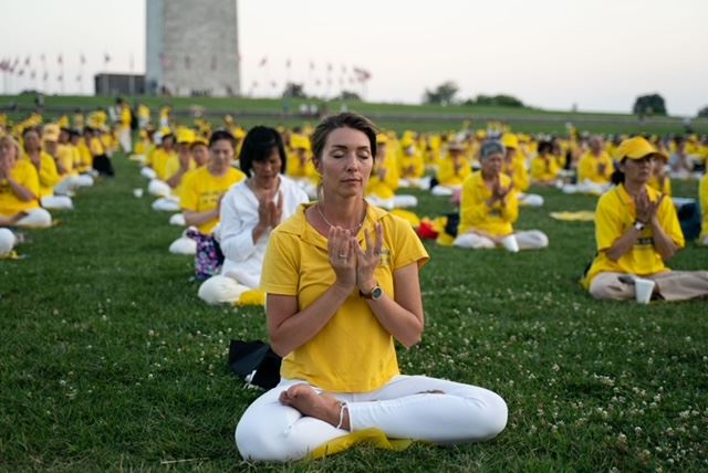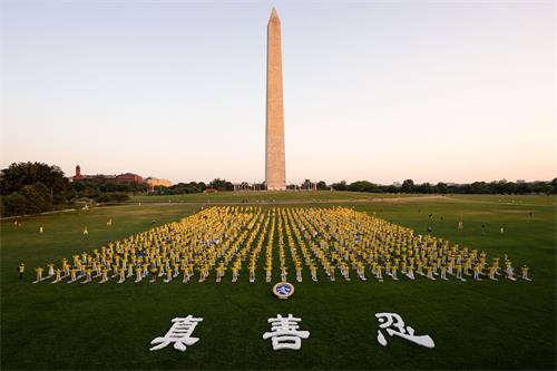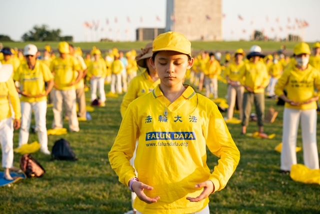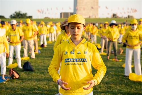 ![]() 图4~5:烛光悼念活动之前,学员们在华盛顿纪念碑前集体炼功。 |