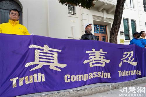 “所以,我们要站出来,告诉世人:中共仍然在迫害法轮功,仍然在迫害修炼真、善、忍的好人。我们要求停止迫害。只要迫害不停止,我们就一直做下去,揭露中共的邪恶,唤醒人们的良知,直到迫害停止的那一天。”