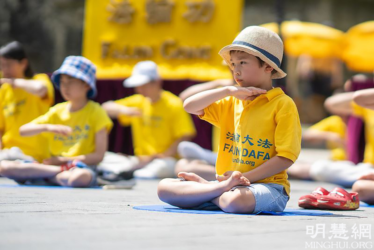 ![]() 图5:法轮功小弟子参加集体炼功 |