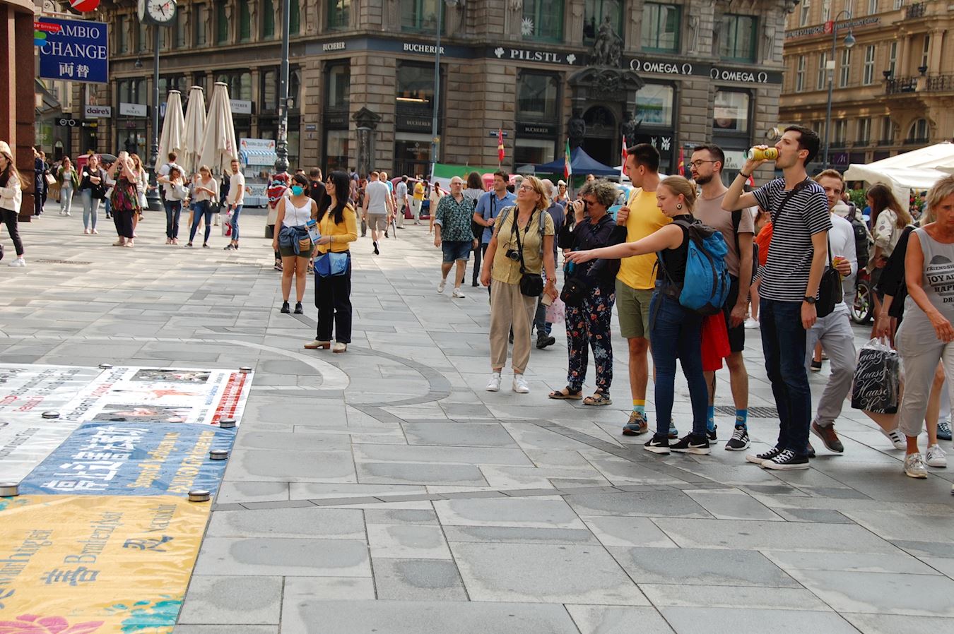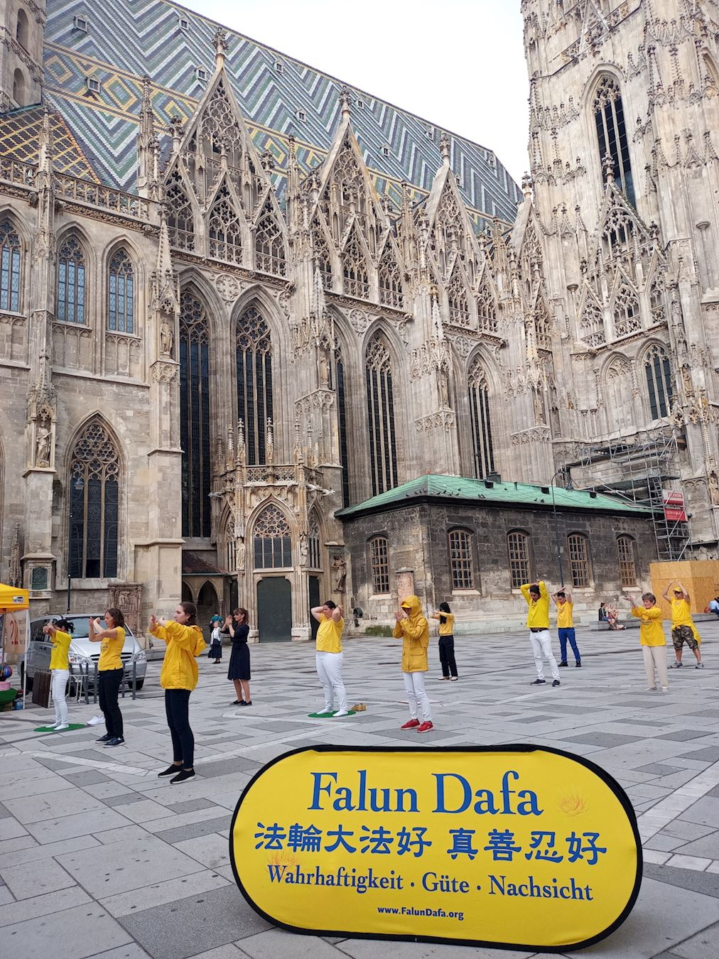 一位奥地利女士和弟弟经过学员的活动现场,她表示非常感动,因为几年前,她在史蒂芬广场也碰到了法轮功学员的信息日活动。没想到今年在这个特殊的日子里,又能碰到法轮功学员。