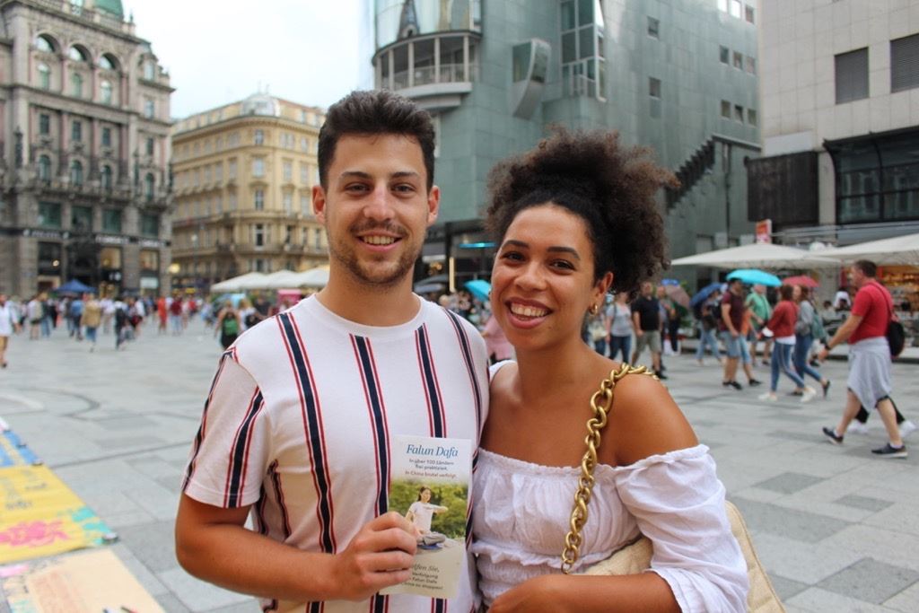 两位维也纳大学生在征签表格上签字后,表示还是第一次知道中共迫害法轮功的真相。他们觉得对法轮功这么和平的修炼者的迫害,非常的可怕和震惊。并要把最好的祝福送给中国大陆法轮功学员。