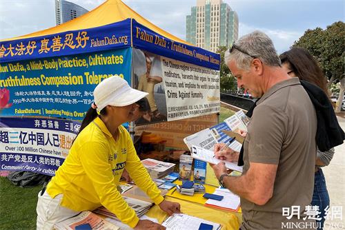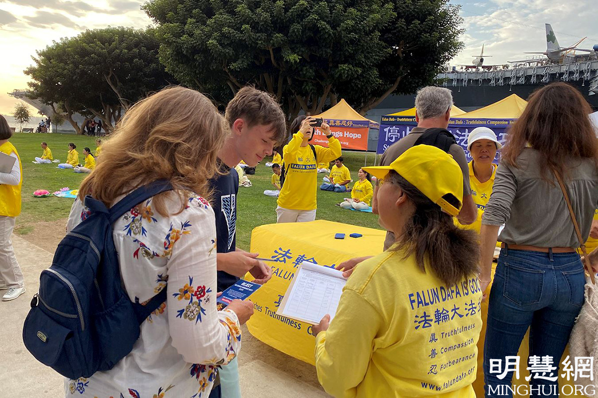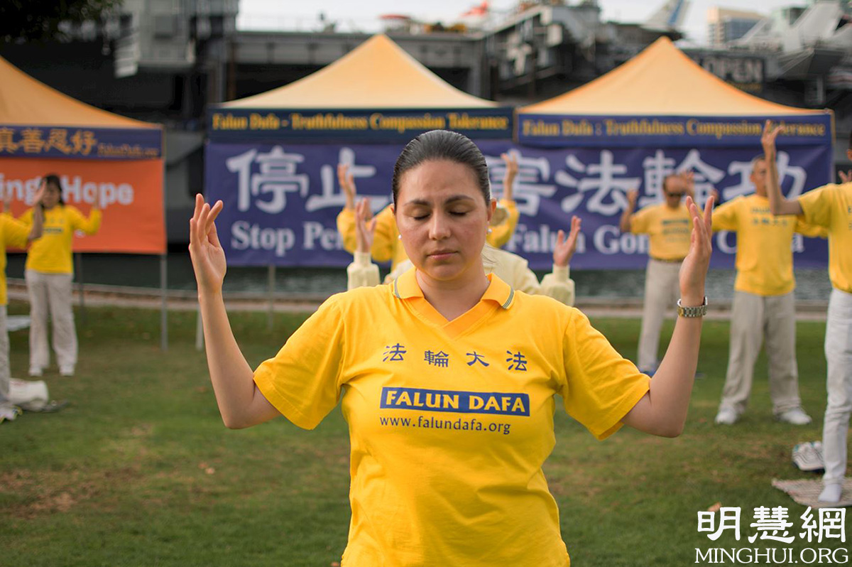 游客朱莉(Julie)说,法轮功炼功的场景“非常美,非常和平,传递了美好的信息。”“这些信息应该得到广传,人们需要了解这些。”