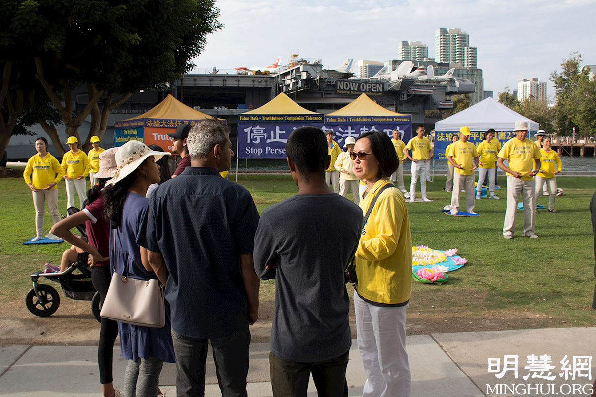 来自亚利桑那州、在人事部门工作的多罗尔斯·威廉姆斯(Doroles Williams)说:“这么和平的打坐,很吸引人。我们当然就想知道为什么这些人在这里?”
