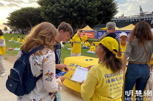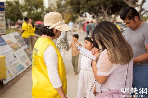 大学生娜塔莉亚(Natalia)和一群同学也毫不犹豫的签了名。娜塔莉亚说:“我希望我们的签名能帮助停止中共的迫害。”