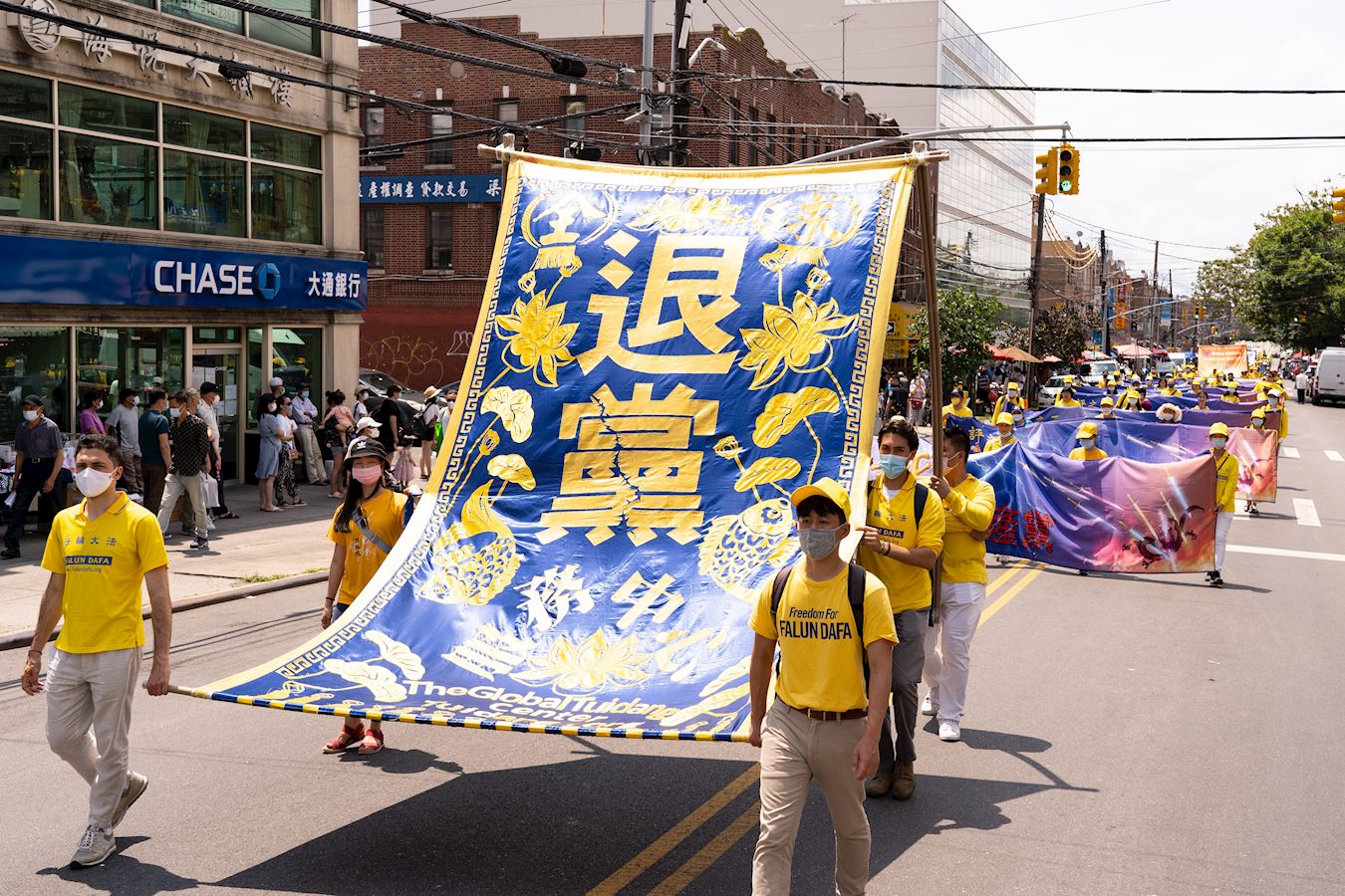 全球.退:党!中心主席易蓉表示:“过去二十二年来,中共邪*党-倾一国之力对法轮功学员进行了群体灭绝,活摘器官,使无数的家庭破裂,使无数的学员被迫害致死,留下了不少的孤儿。我呼吁布鲁克林更多的华人能够站起来,公开地反迫害,加入退!党!大潮,退出中共党团队,退!党!保平安。”