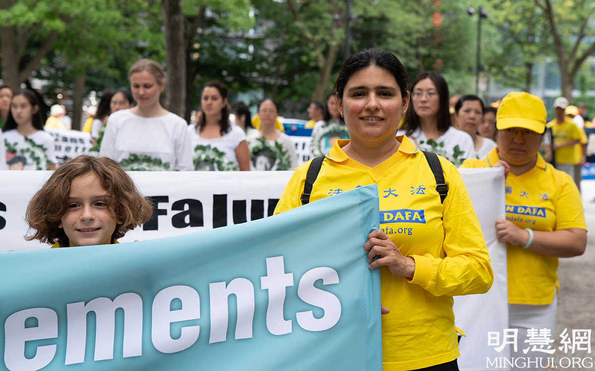 “今天我们来到这里参加游行,是告诉人们法轮大法好,法轮大法在中国遭受到迫害。迫害一天不停止,我们就不会停止反迫害。”