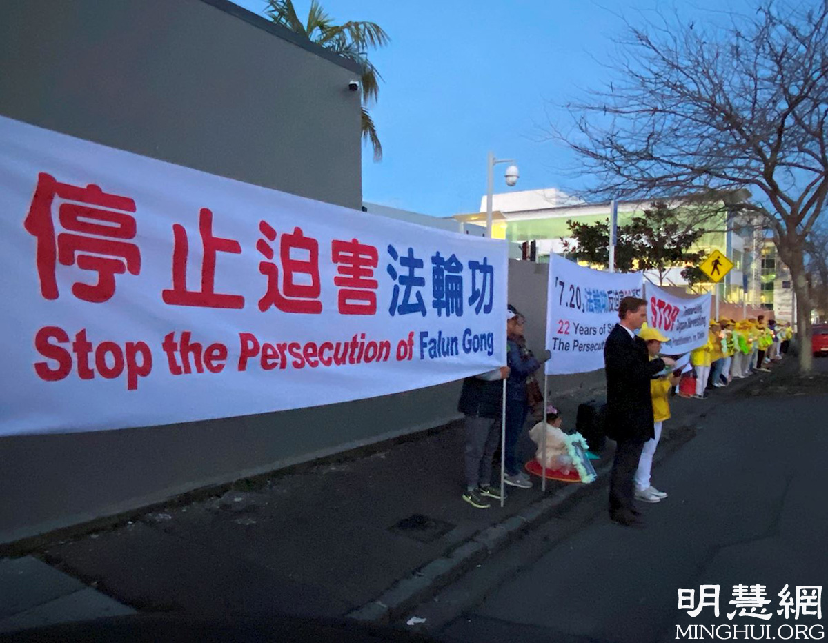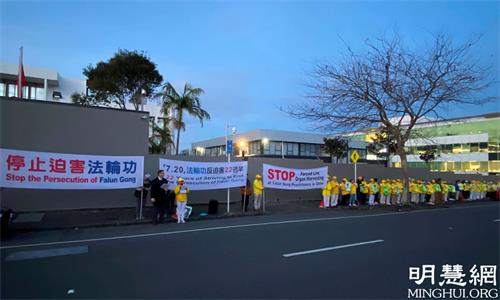 ![]() 图1~4:法轮功学员在奥克兰中领馆前举行烛光悼念活动 |