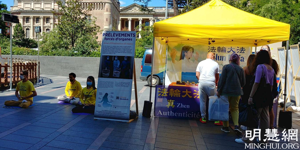 当天,位于法国奥克西塔尼(Occitanie)大区图卢兹市的法轮功学员聚集在市中心的戴高乐广场,其醒目的真相展台吸引着路人驻足观看,法轮功学员们向人们展示5套功法,发放真相传单,并向人们讲述发生在中国的这场历时22年的残酷迫害,很多人都被震惊了,人们主动在请愿书上签名。
