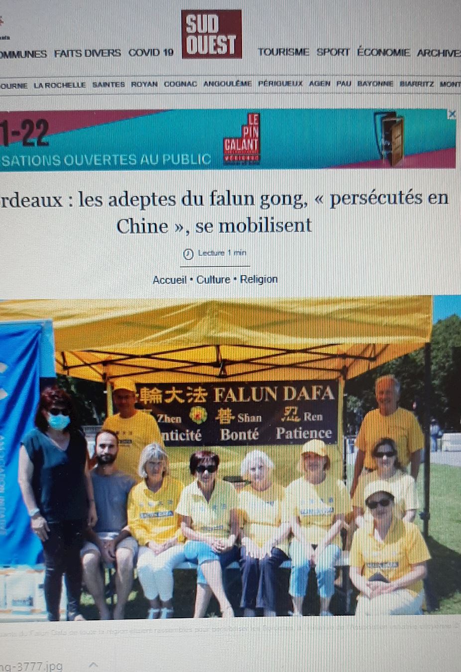 文章的标题是:“波尔多:在中国受迫害的法轮功追随者动员起来”。