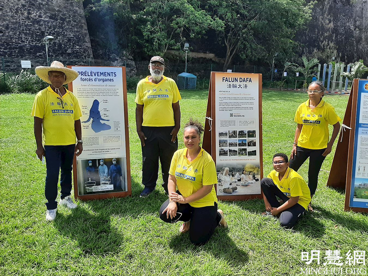 ![]() 图12:留尼汪岛法轮功学员在展位前讲真相 |