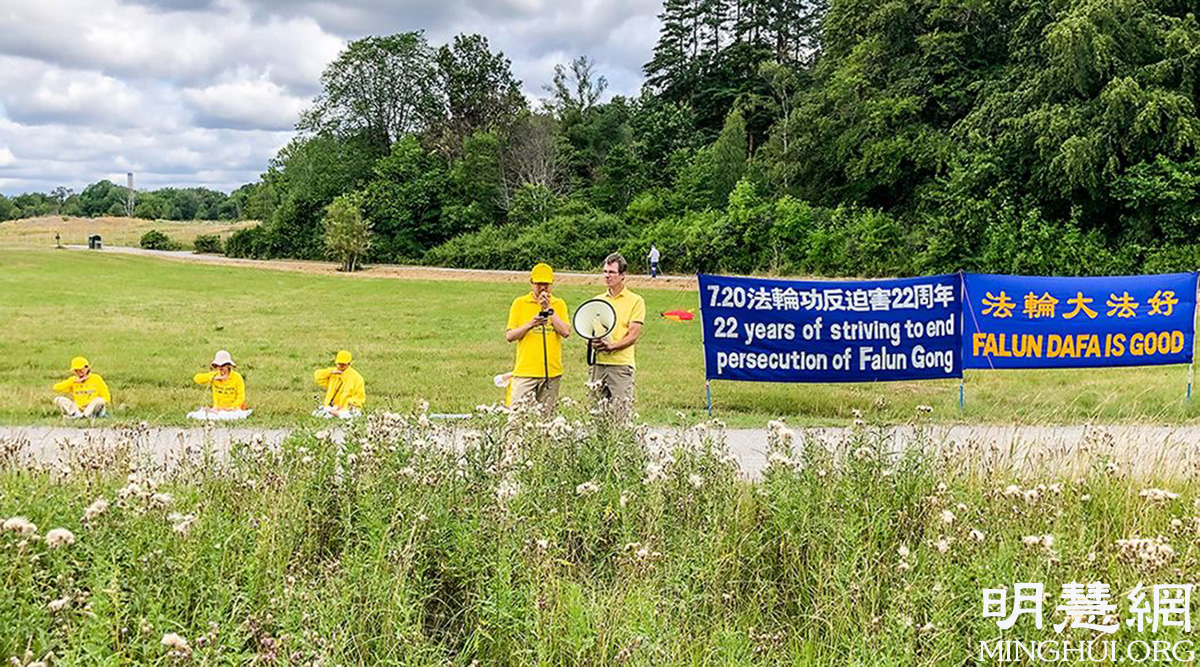 二零二一年七月二十日上午九点,法轮功学员再次聚集在中共驻瑞典大使馆前,抗议中共自一九九九年七月二十日至今,对法轮功信仰群体持续了二十二年的残酷迫害,揭露中共活摘法轮功学员器官的罪恶。有市民表示,“瑞典人在觉醒,大家都觉醒了,很快中共恶魔自然就消灭。”