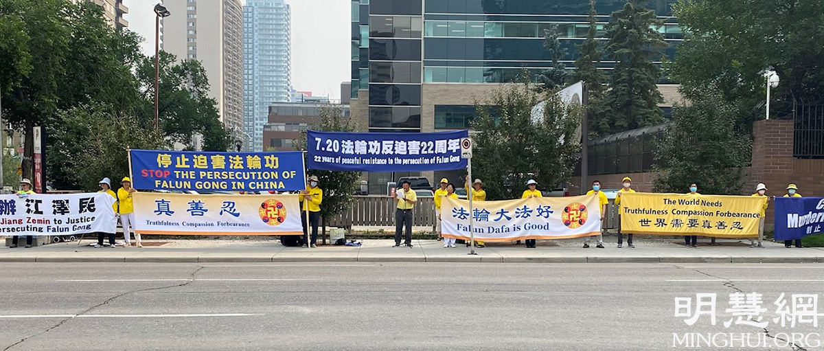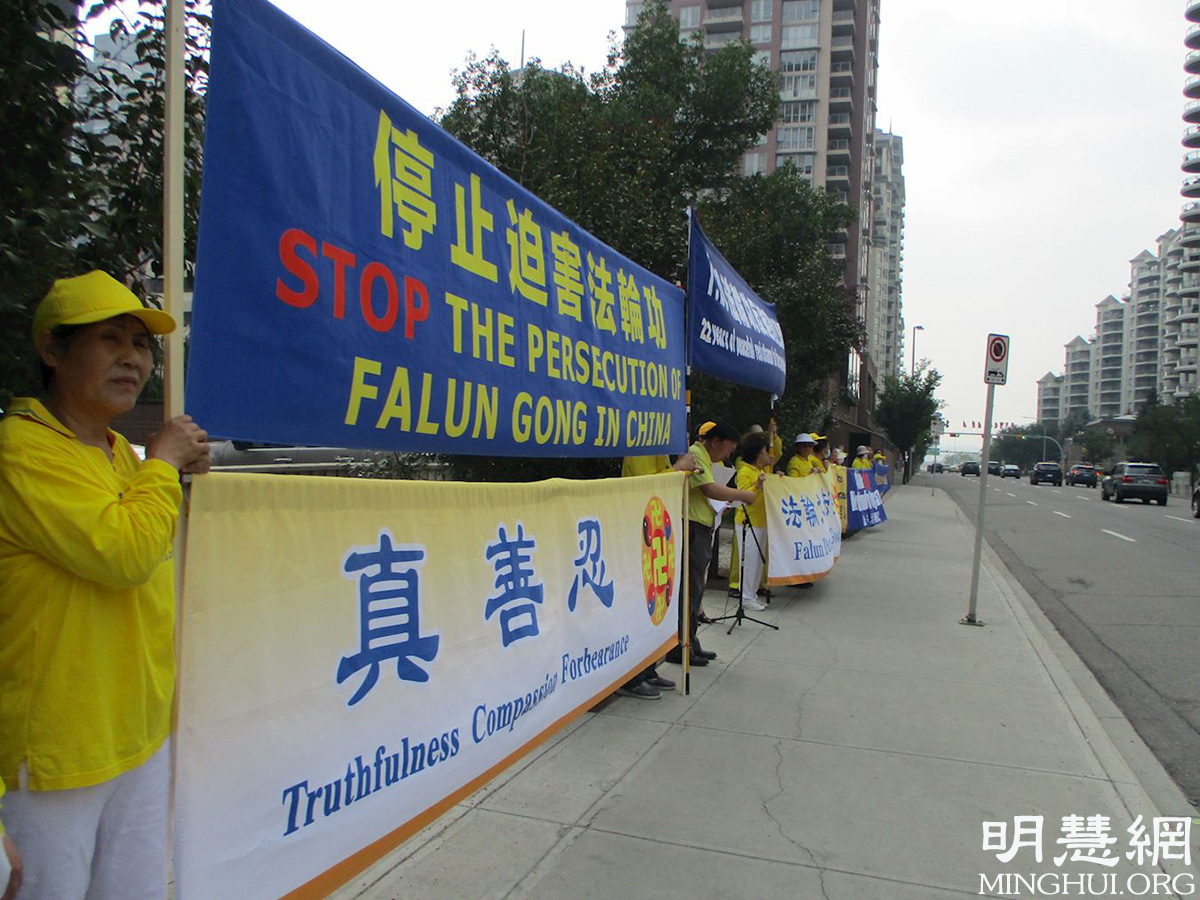 ![]() 图1~3:2021年7月19日下午,加拿大卡尔加里部份法轮功学员在中领馆前集会,谴责中共对法轮功长达22年的迫害。 |