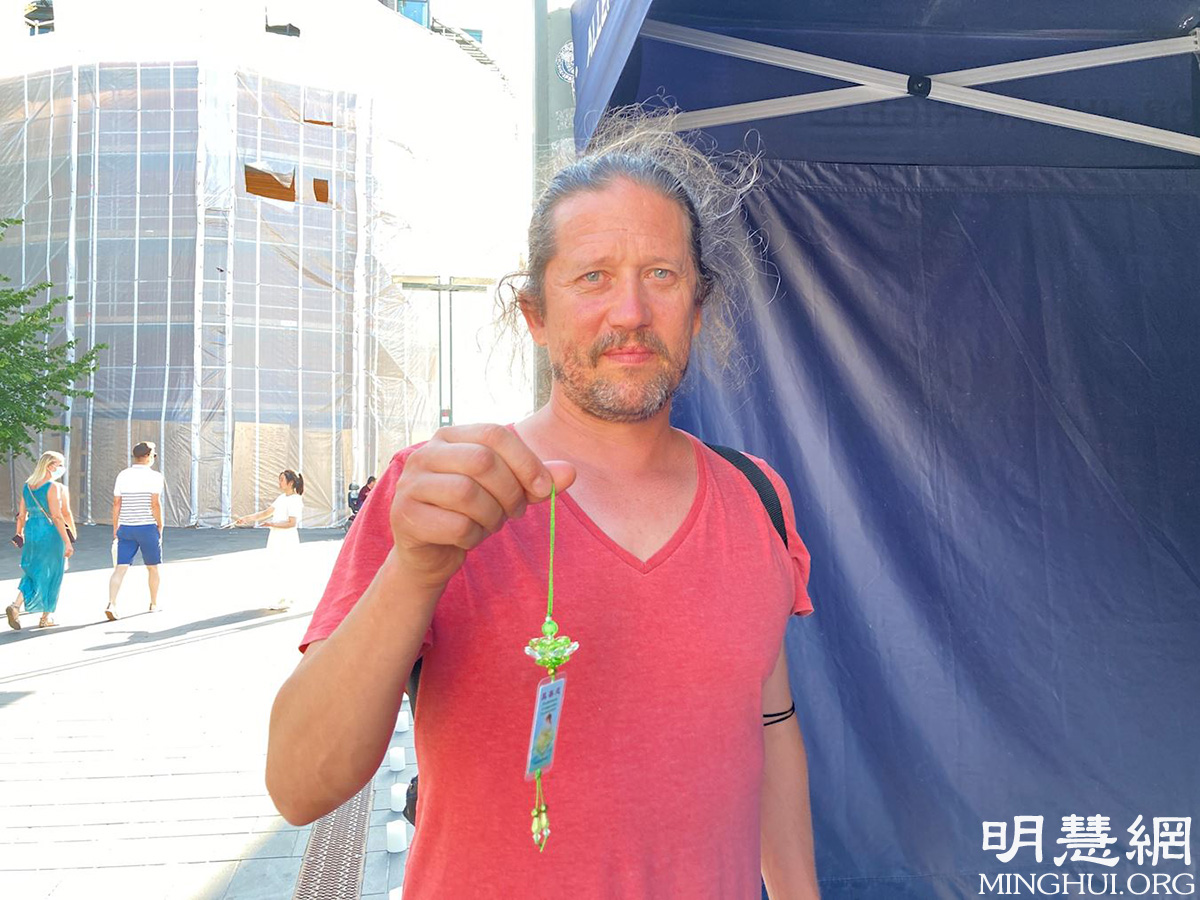 俄罗斯人歇尔格(Sergei)推着自行车路过,他说:“法轮功对人的精神提升有很大帮助。中共非常坏。对你们的遭遇,我感到非常难过,但我坚信一切都会好的。”歇尔格签完名字离开后,又折回来,在活动现场停留了将近一个小时。