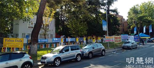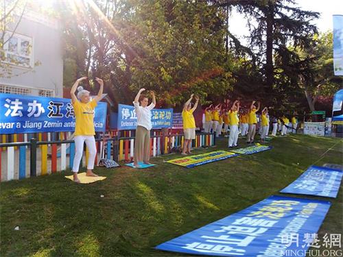 ![]() 图6:西班牙法轮功学员在中使馆前发正念 |