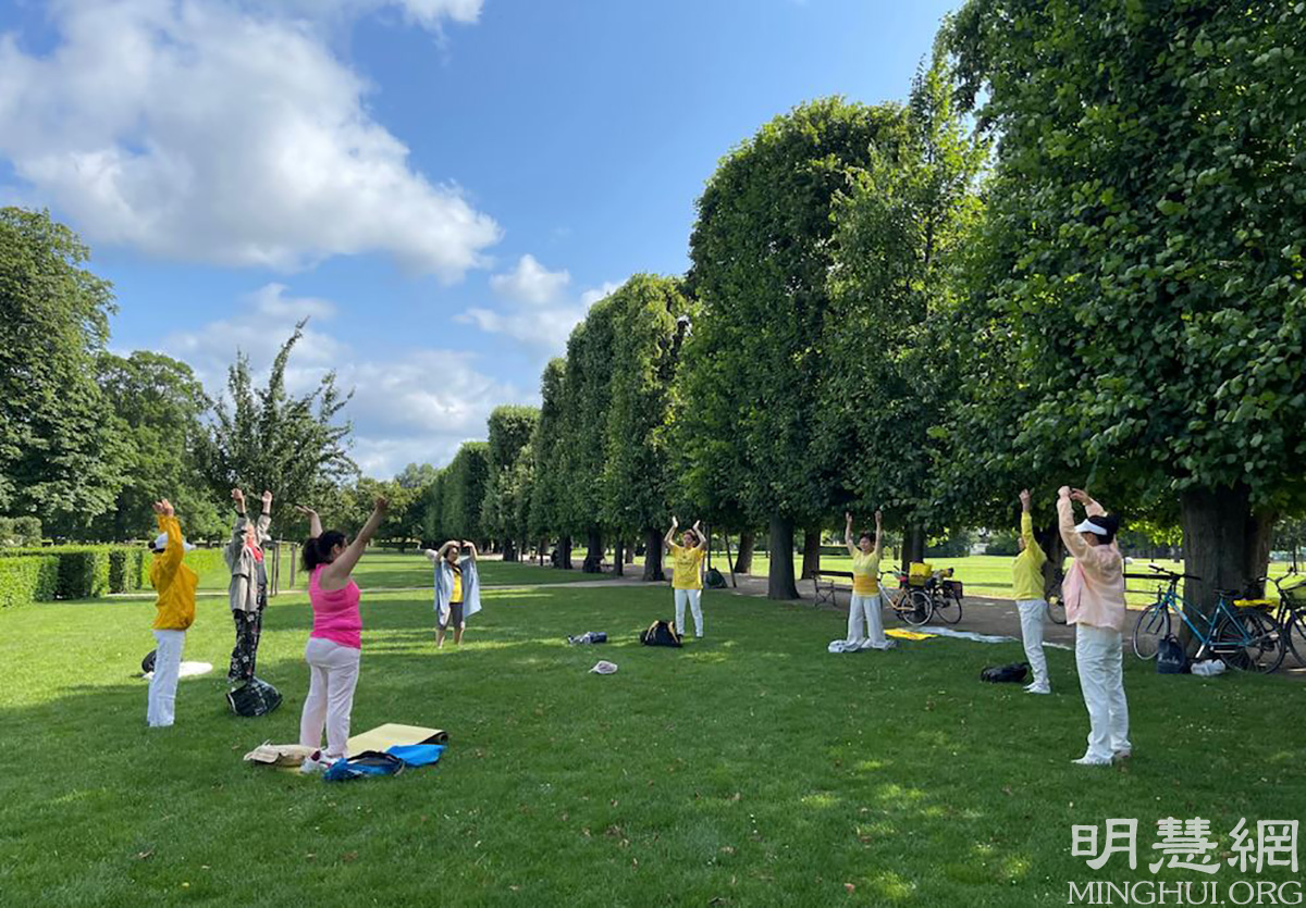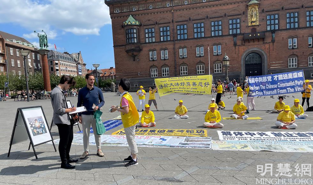 ![]() 图2:下午在哥本哈根市政厅广场,法轮功学员向民众讲述中共持续二十二年的迫害法轮功的罪行。 |