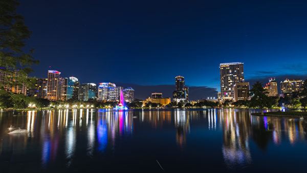 ![]() 图8:奥兰多市中心的伊奥拉湖,当地法轮功学员长年在此湖畔炼功讲真相 |