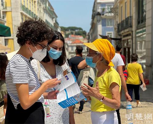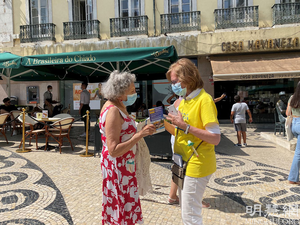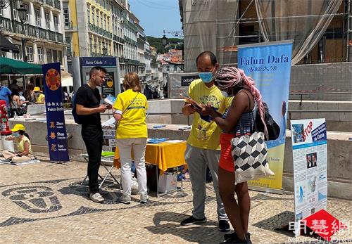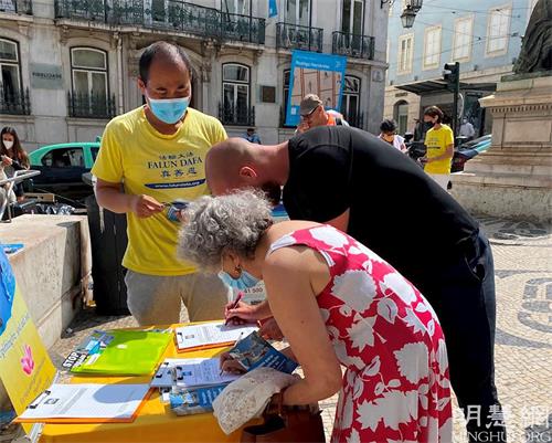 在活动中有一位带着拉杆箱的游客径直走到展桌前主动签字后说,他了解中共迫害法轮功这么多年的情况。他表示很高兴能在里斯本遇见法轮功学员,还能够有机会签署请愿书。他说:“非常钦佩法轮功学员这么多年来的坚持,祝活动越办越好。”