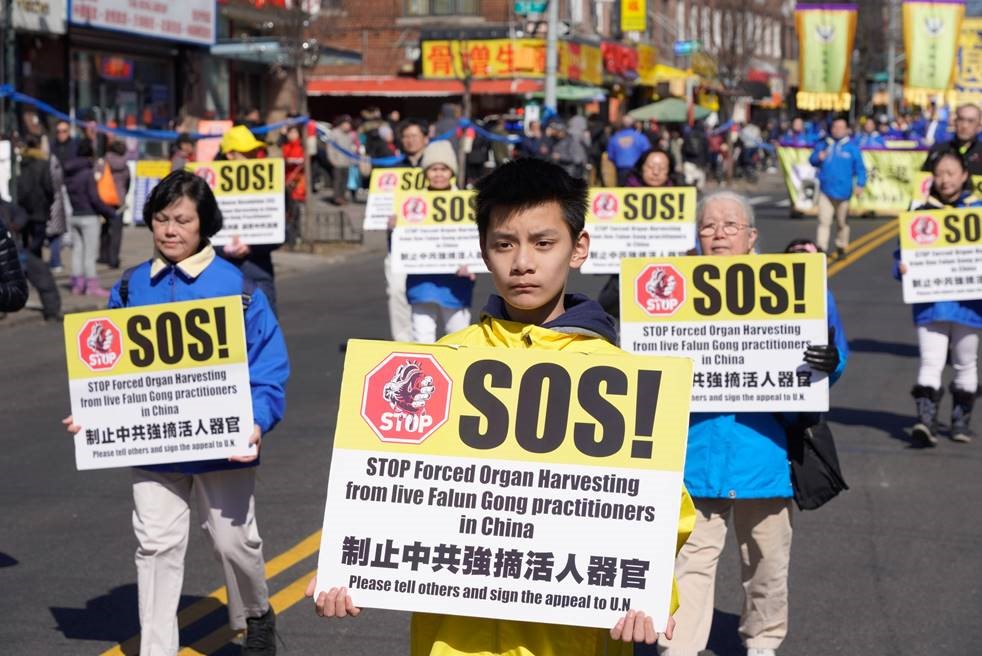 ![]() 图:法轮功学员游行,制止活摘器官 |