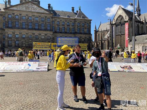 七月十七日,部份荷兰法轮功学员来到荷兰首都阿姆斯特丹市中心——达姆(Dam)广场举办反迫害活动。