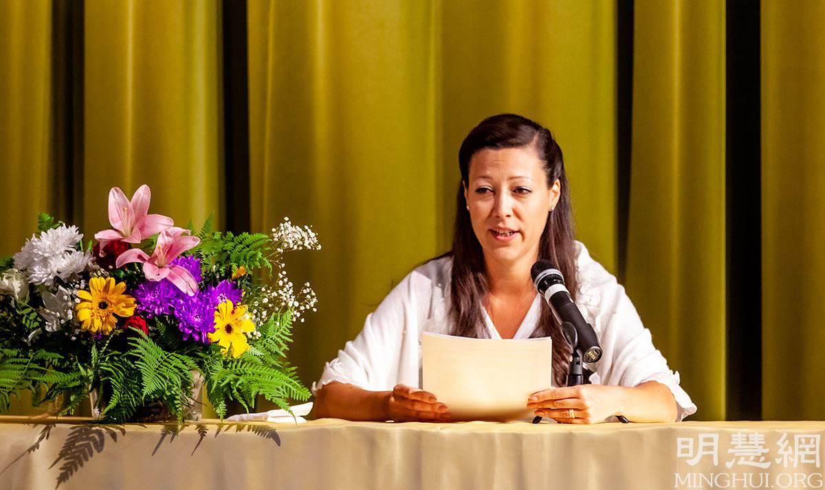 来自斯德哥尔摩的陈女士介绍了参与当地洪法讲真相突破自我、实修的体会。她意识到个人修炼不到位就很难保持精進状态,那么讲真相时就发不出强大的正念解体在背后操控干扰众生的邪恶。于是她加强学法发正念,感到自己救人的心越来越迫切。她谈到,“有几次我开始讲的时候,对方下意识的退后半步和我保持社交距离,但当真相讲到位触动了他们的善念时,有的眼里含着泪走上前拥抱我,有的双手向我合十,那一瞬间我真切的感受到一个得救的生命对大法无限的感恩。”