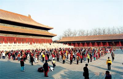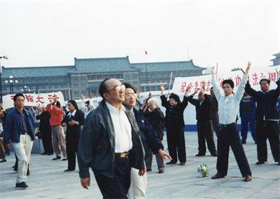 -1998年8月11日,《北京日报》载文介绍京城晨练,特别提及法轮功并配以法轮功学员炼功的压题照片。