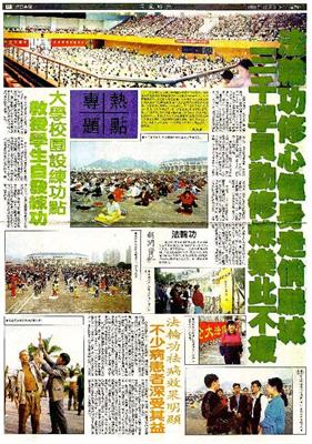 -1998年8月28日,《中国青年报》以《生命的节日》为题介绍了沈阳亚洲体育节上1500人的法轮功队伍和其健身效果。