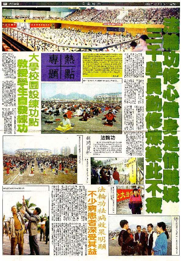 -1998年12月31日,《深星时报》在“热点专题”版以整版篇幅刊登法轮功简介及法轮功修心健身的多篇文章及七幅法轮功学员心得交流会及炼功的彩色照片。