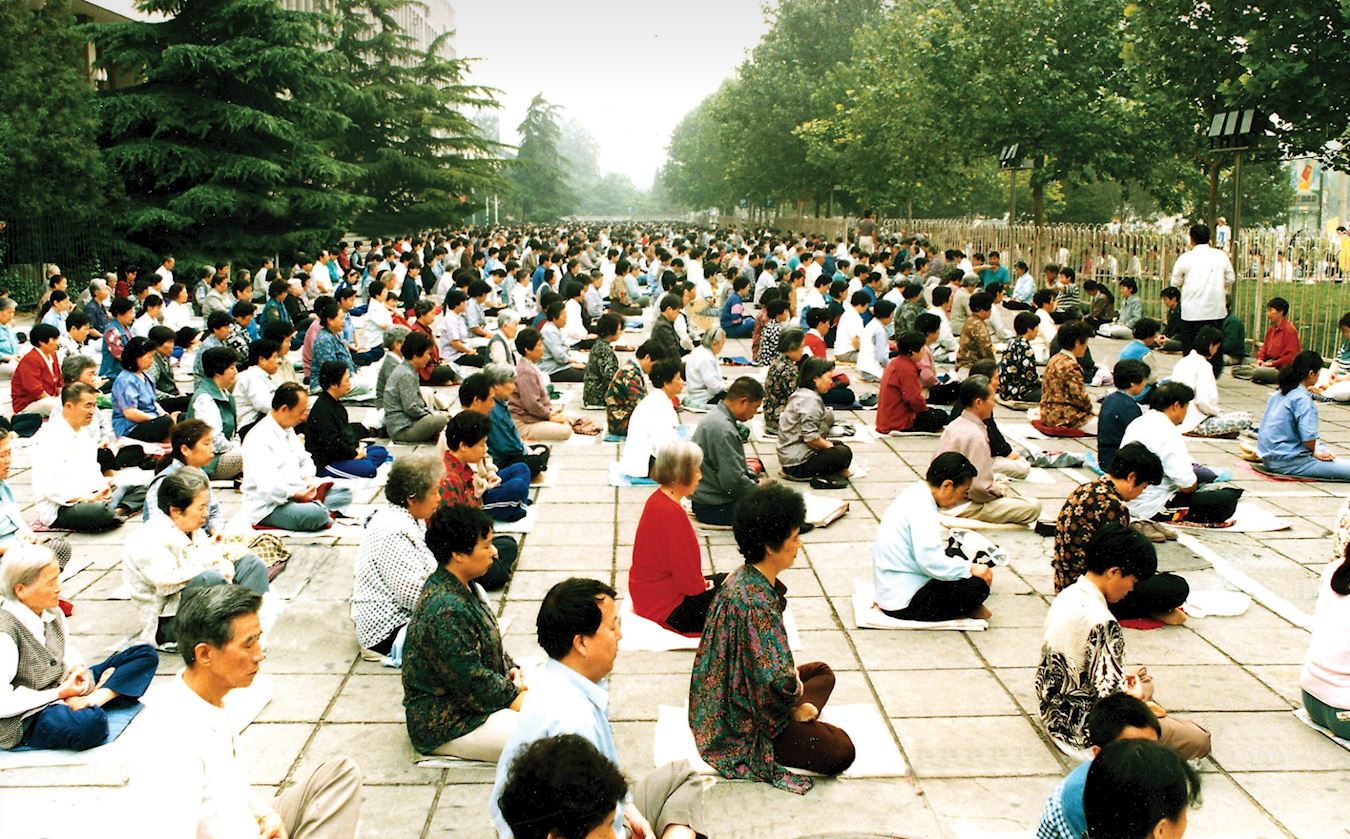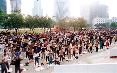 -1998年11月24日,上海电视台播放了近万名法轮功学员在上海体育中心集体炼功的采访。称法轮功已传遍欧美澳亚四大洲,全世界已有一亿人在炼。