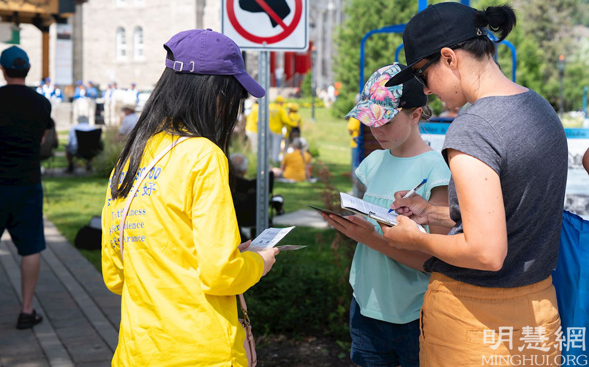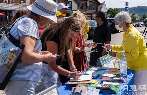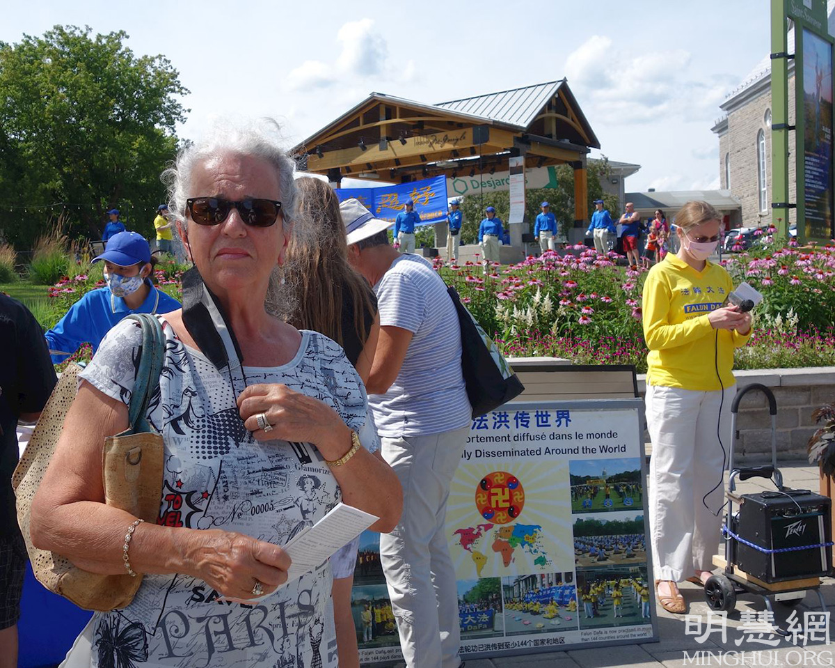 当地居民德尼丝·贝朗杰(Desnise Bélanger)表示,法轮功学员带来的真相信息非常好,但是这么令人震惊的迫害在本地媒体上却很少看到,她觉得是一种耻辱。她祝法轮功学员好运。