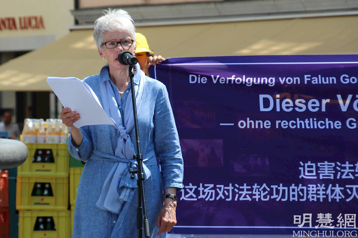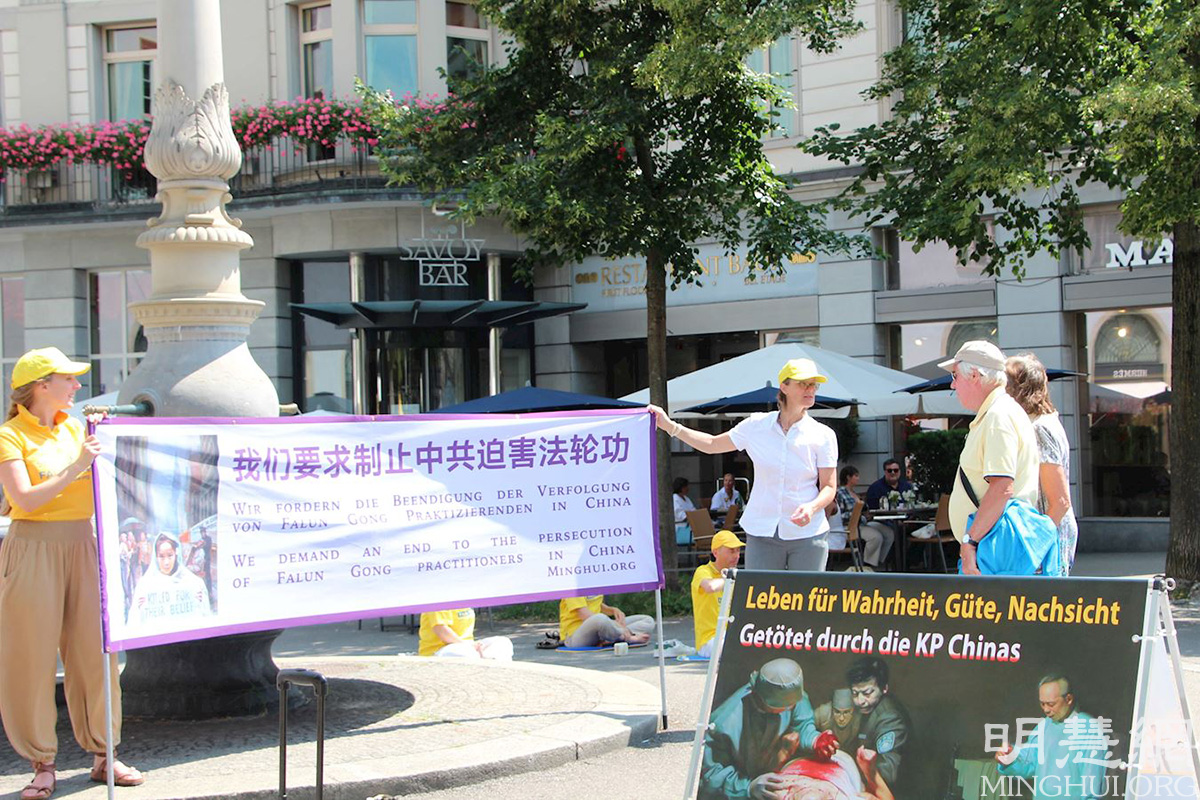 退休前从事文员工作的苏珊娜·阿萨尔(Susanne Assal)在电车上看到法轮功学员的活动后,特意下车,径直来到信息台前签名支持法轮功学员。她认为对中共的罪行,“我们应该反对,应该有更多的人来共同反对,不能对此听之任之。”她并说:“(中共)只有谎言。我不愿意购买到奴工产品,我反对它对民众的迫害和奴役。”