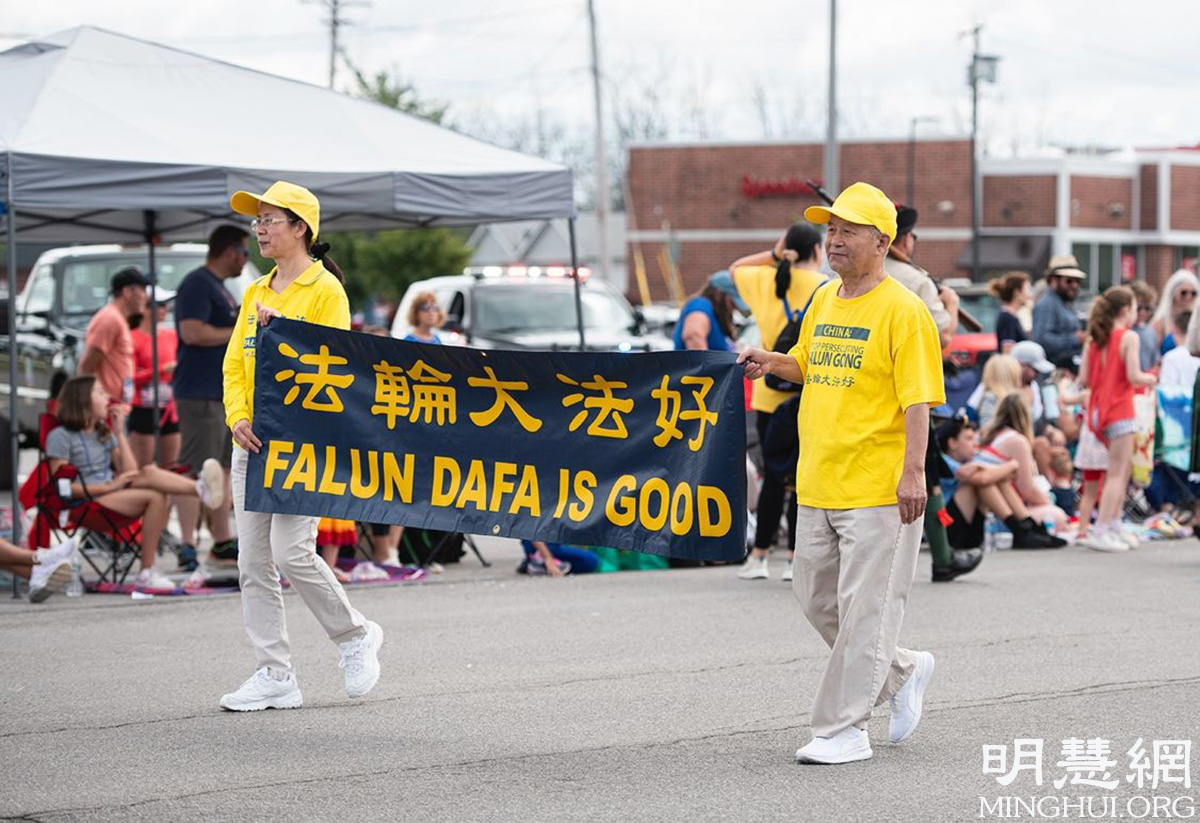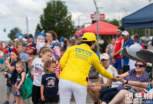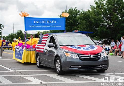 ![]() 图1~3:法轮功学员的游行队伍参加独立日花车游行 |