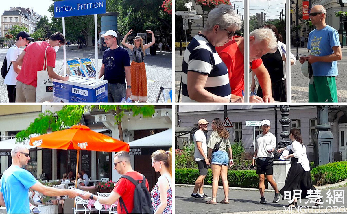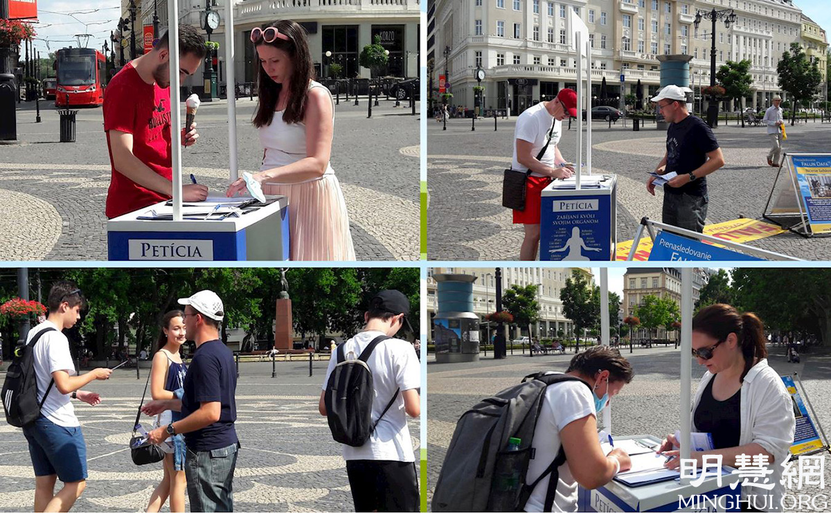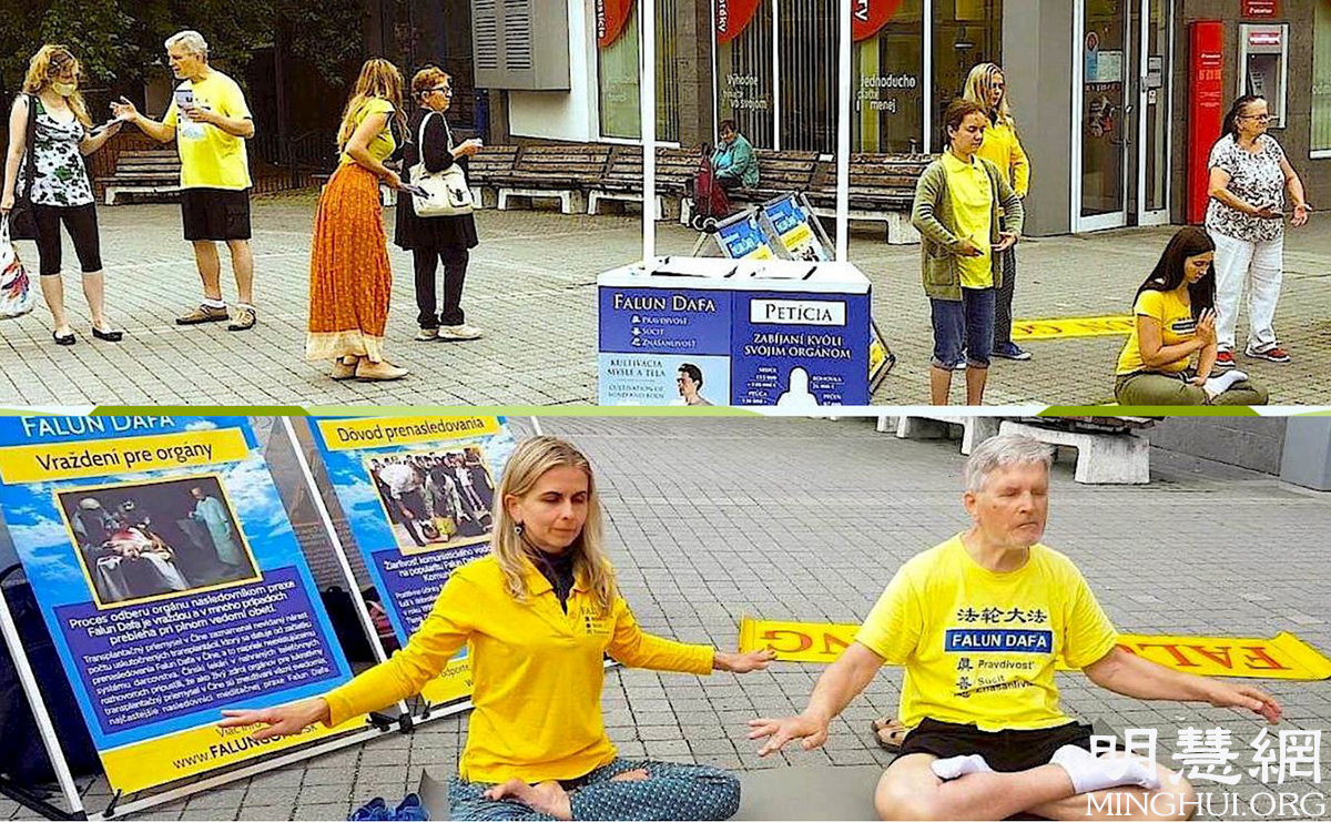 ![]() 图1:学员们在恰德察(Čadca)市中心讲真相传播法轮功 |
