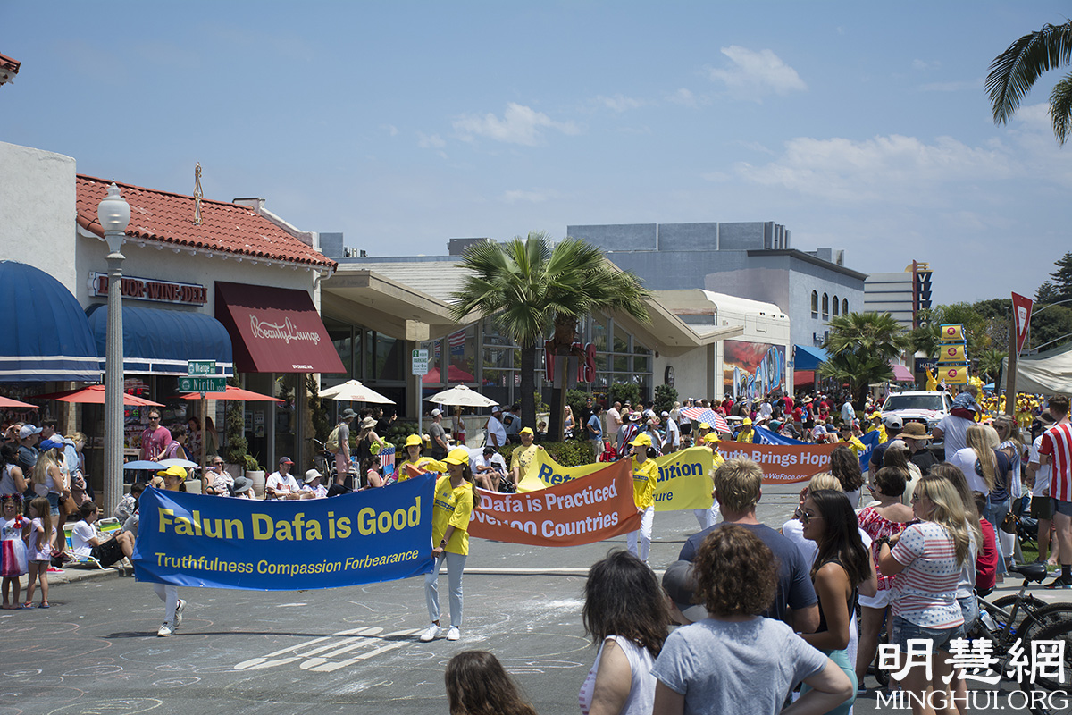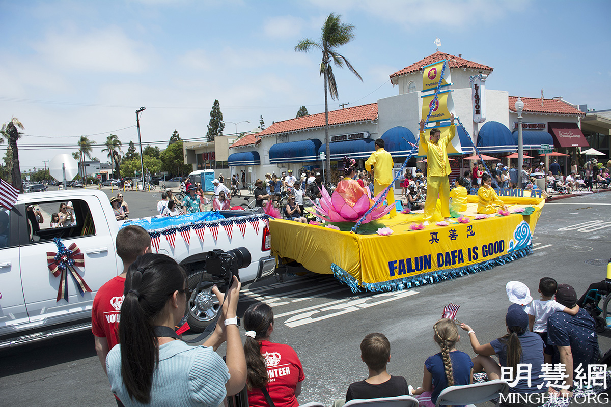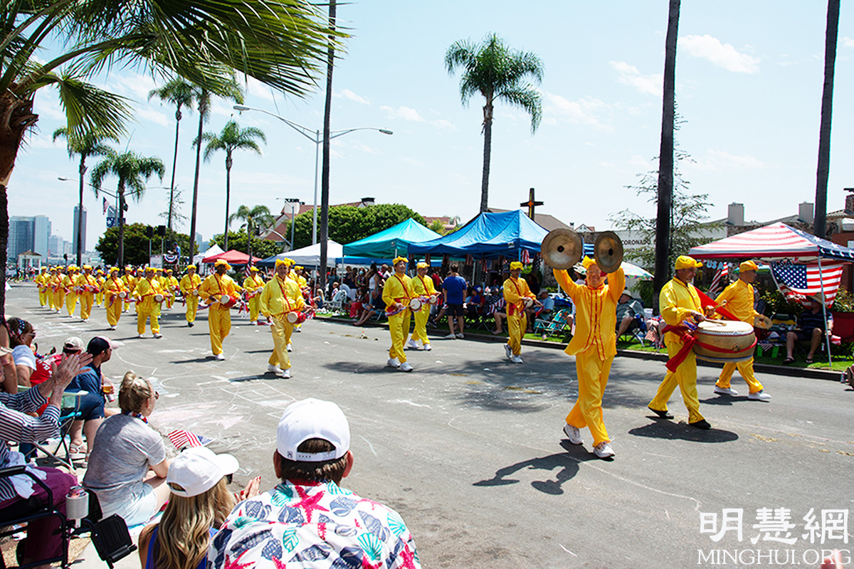 科罗纳多岛是美国海军基地,其国庆遊行是圣地亚哥县最大的遊行,往年每年吸引数万民众观看。去年因中共病毒疫情(COVID-19)暂停一次。今年有一百多个队伍参加,圣地亚哥法轮功学员今年的队伍包括横幅队、花车和腰鼓队。