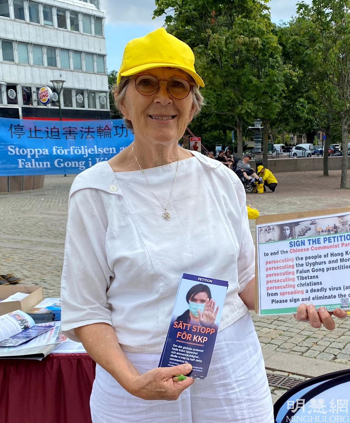 Renée是一位荷兰人,在瑞典已经生活了很多年。她表示:“今天与大家一起在这里向人们讲真相很重要。有几位女士得知了中共的罪行后,不但自己签了名,回去后又带来更多的朋友签名。”