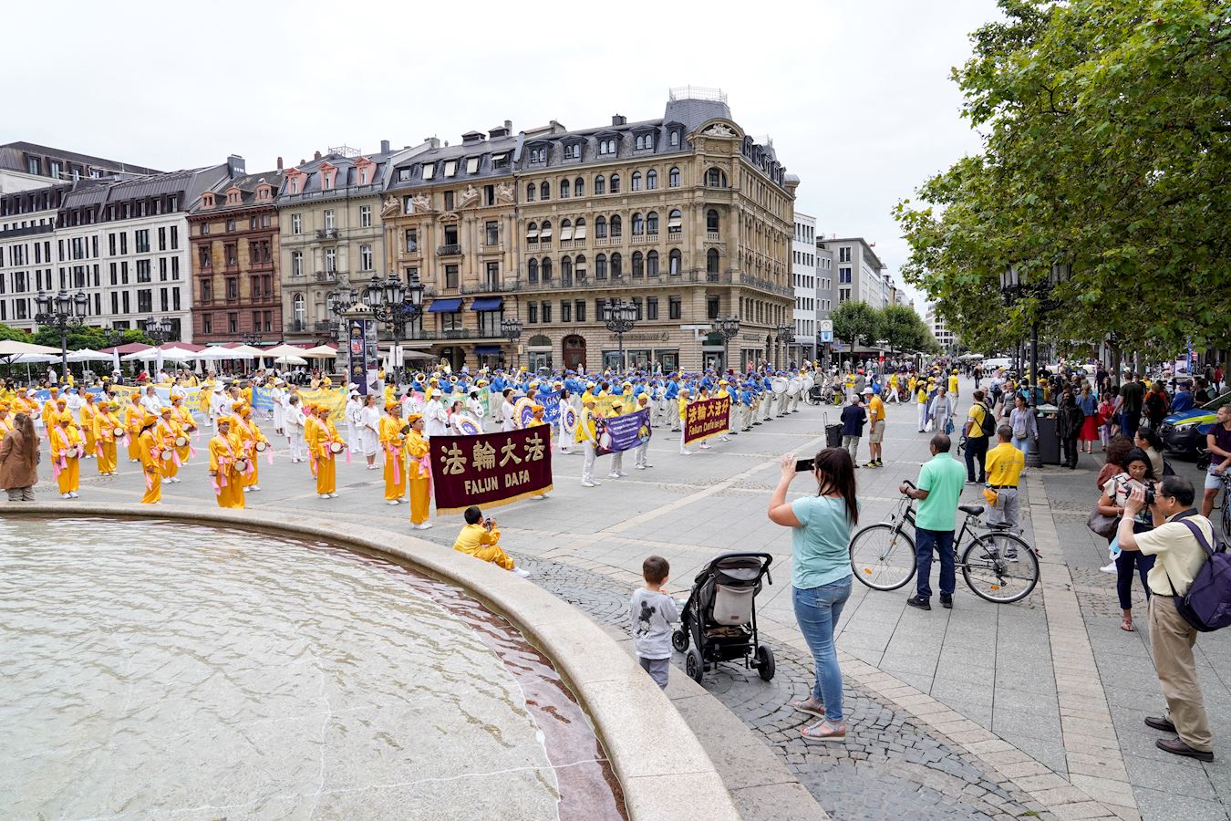 ![]() 图1:二零二一年八月七日,法轮功学员在德国法兰克福举办大型集会游行活动,吸引了人们的目光。 |