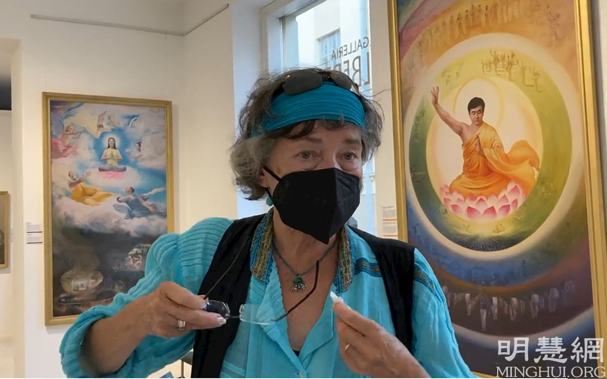 ![]() 图1:画家艾莉森·维克伦德(Alison Wiklund)在画展流连了两个半小时,她真切希望真、善、忍能根植于每个人心中。 |