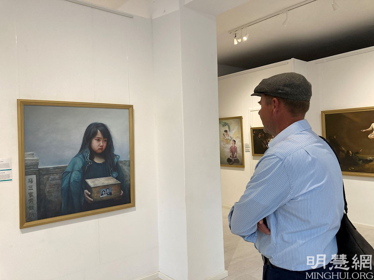 他进一步分享了自己的感受:“从宁静祥和中展现出美好的讯息,那是一种关怀和慈悲,特别是感觉到关怀。另一方面,这场迫害针对的是平和的无辜民众,因而观看这些作品时,又为他们遭受的伤害感到很难过、很悲伤。人们因为信仰被残害虐杀,这不能被接受。”