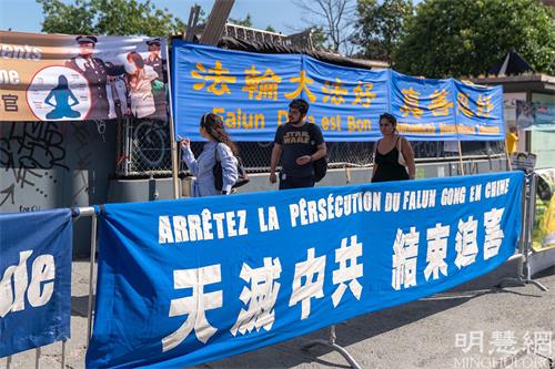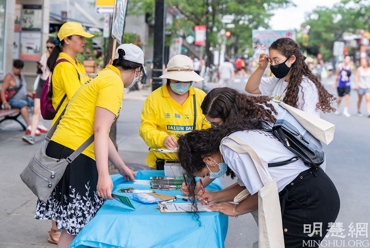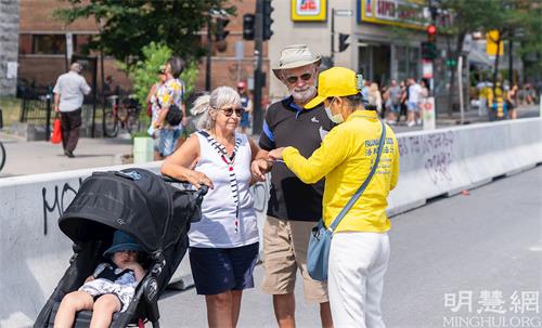 ![]() 图1~7:2021年8月14日,法轮功学员在蒙特利尔市中心讲真相,征集反迫害签名。 |