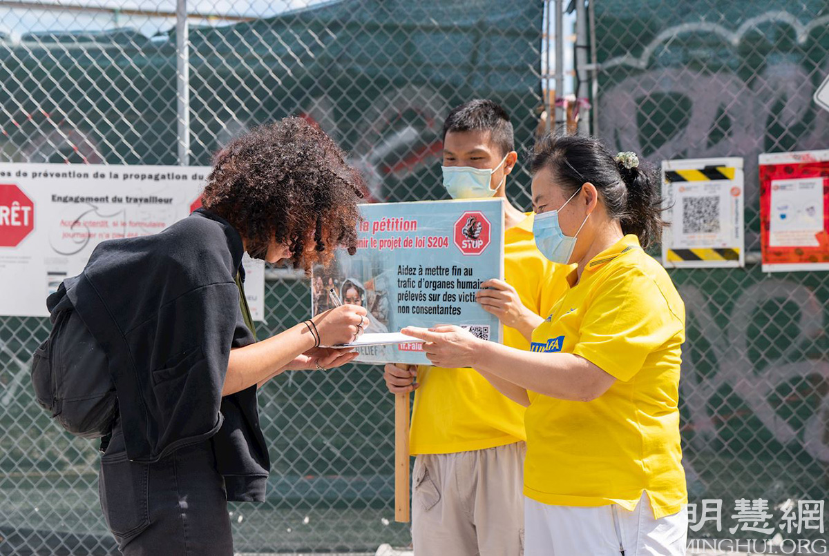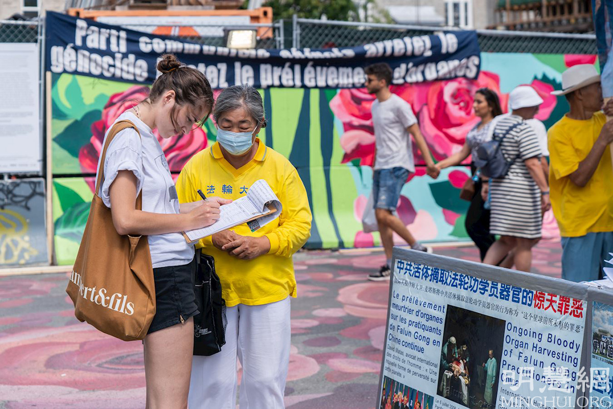 ![]() 图9:蒙特利尔市民伊莎贝尔(Isabelle)说,她很高兴签名制止迫害的人很多,“作为公民,我们有责任行动起来。” |