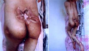仲淑娟,在大连教养院,被上“五马分尸”刑,打手用刷厕所的刷子,捅阴道,把下身的会阴部对准椅子高出部位摇,用穿鞋的脚踢阴部,用带尖的拖布把,往阴部捣,致使会阴部位破损、溃烂,致使她大出血。下身肿得像裤内塞个足球的样子,两大腿筋被重度拉伤,三个多月不能蹲,上厕所需要别人帮助。