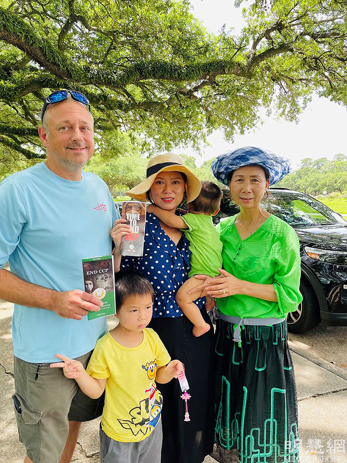 马克先生的妻子讲中文,两位学员走到了她身边,介绍说:“我们是义工,在这里,我们想让善良的人了解中共的邪恶。中共不仅迫害国内(中国大陆)的人民,还将魔爪伸向全世界。”还谈到:“中共病毒蔓延全世界,很多美国人不知道中共的邪恶,我们要让他们知道。在美国很多华人已知中共的邪恶。”两位学员向她介绍其他法轮功的真相,最后告诉她:“远离中共,远离邪恶。”