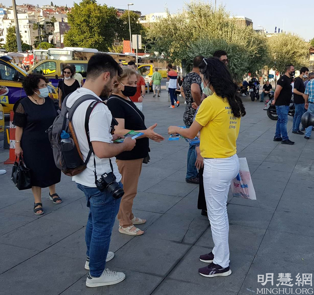 ![]() 图1:法轮功学员在伊斯坦布尔举办讲真相活动 |